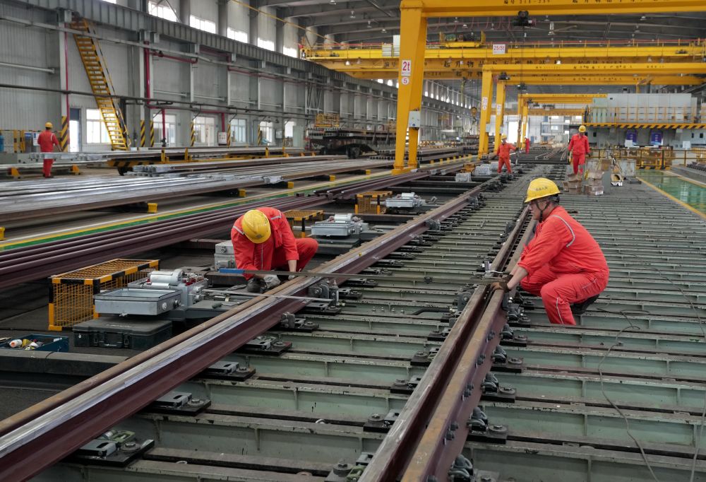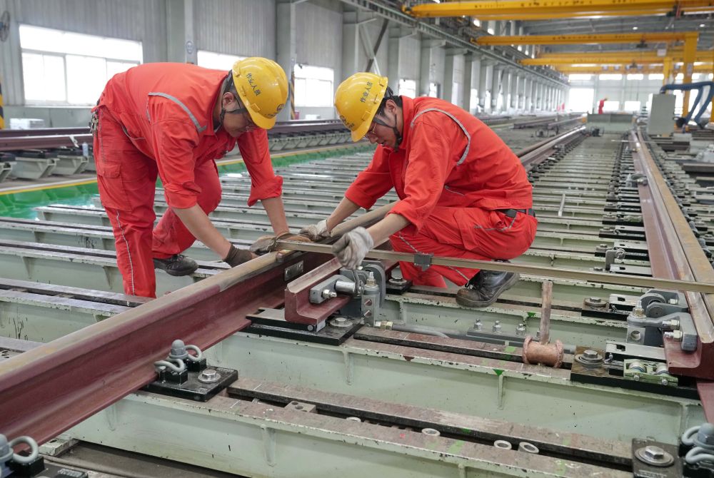 ??↑6月11日,河北省秦皇島市山海關(guān)區(qū)中鐵山橋集團(tuán)有限公司的工人在道岔生產(chǎn)車間工作。 近日,隨著國內(nèi)一些重要鐵路及地鐵項目有序推進(jìn),承接鐵路道岔生產(chǎn)任務(wù)的河北省秦皇島市山海關(guān)區(qū)中鐵山橋集團(tuán)有限公司生產(chǎn)車間內(nèi)一派繁忙,工人們正保質(zhì)保量加緊生產(chǎn),助力中國鐵路交通建設(shè)。中鐵山橋始創(chuàng)于1894年,生產(chǎn)的道岔產(chǎn)品遠(yuǎn)銷30多個國家和地區(qū)。 新華社記者 楊世堯 攝
